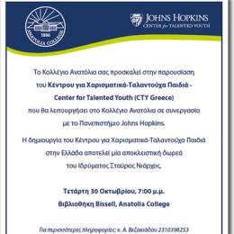 Το CTY Greece at Anatolia θα εξελίξει τη φιλομάθεια, το γνωστικό υπόβαθρο και το διερευνητικό πνεύμα των μαθητριών και των μαθητών, με μαθήματα εξαιρετικού ενδιαφέροντος που θα διευκολύνουν τους μαθητές, όταν ενηλικιωθούν, να επιλέξουν σωστά την κατεύθυνση των σπουδών τους και το επαγγελματικό τους μέλλον προσφέροντας με τη σειρά τους στην κοινωνία.